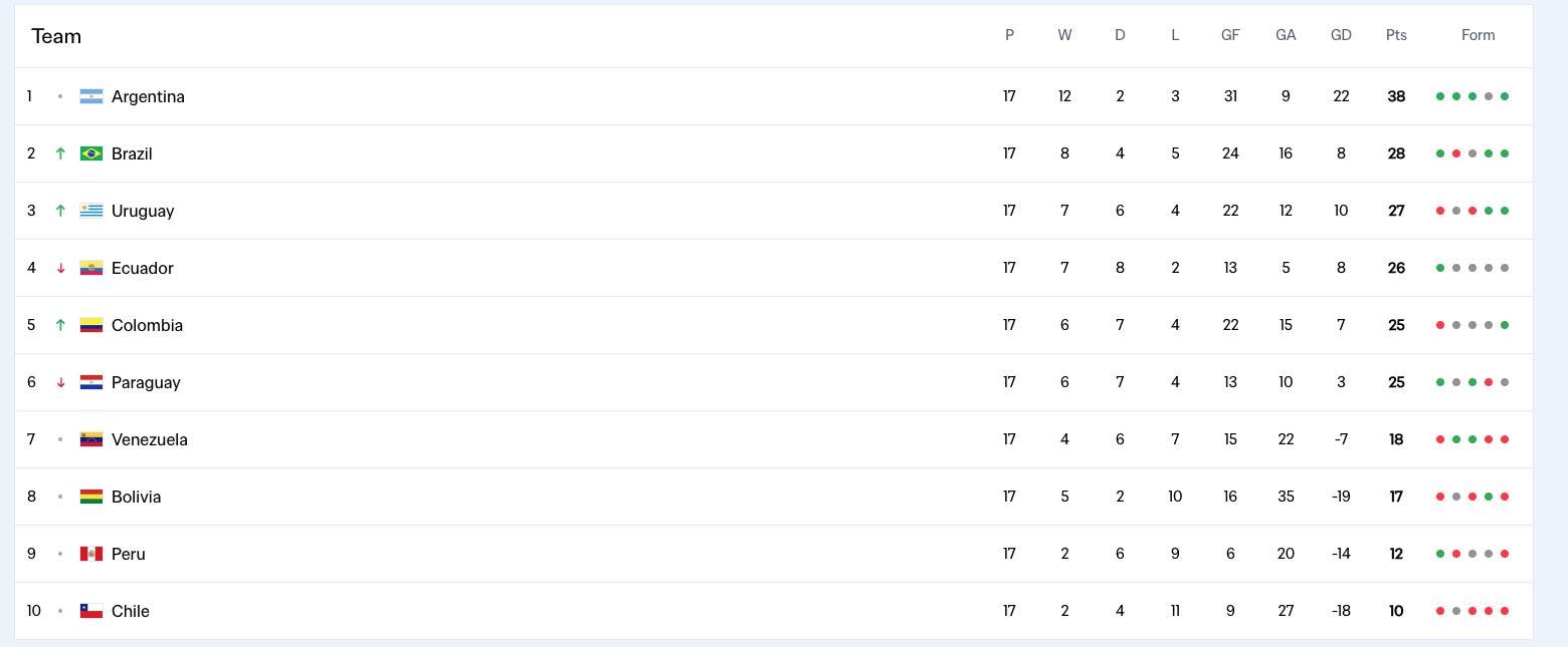 - A. 브라질은 상위권을 굳혔고, 마지막 라운드에서 볼리비아 원정만 남겨두고 있습니다.