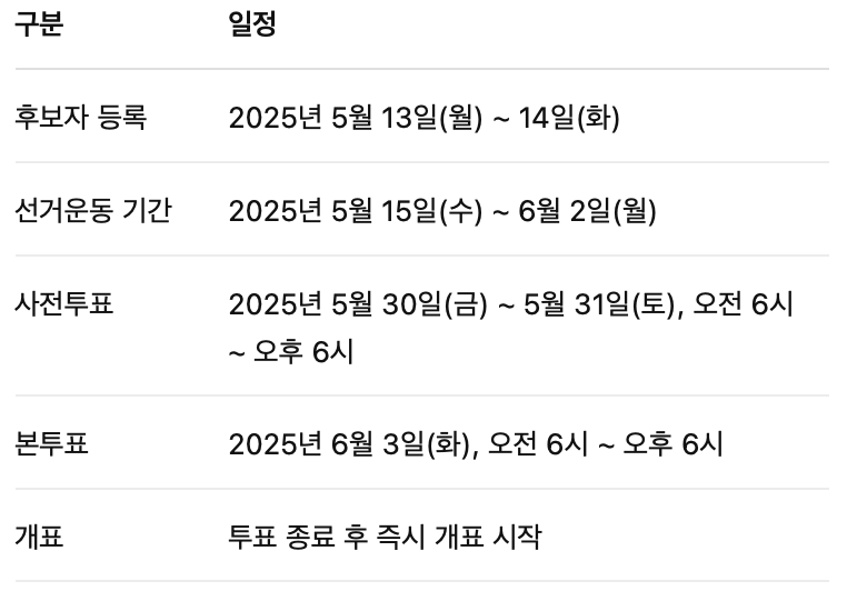 2025년 6월 3일, 우리의 소중한 한 표가 대한민국의 미래를 결정합니다. 사전투표 또는 본투표에 반드시 참여하시고, 올바른 정보로 올바른 선택을 하시길 바랍니다.
